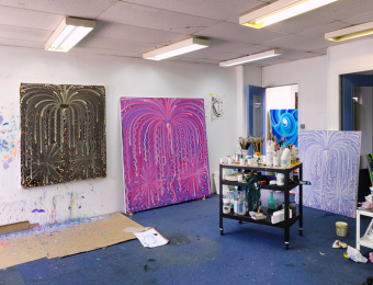 Photo of the artist’s studio at the Adhex industrial site in Chenôve, France.