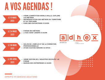 Le Groupe ADHEX a le plaisir de participer à de multiples évènements tournés vers l'emploi et la promotion de nos métiers, durant les mois de Mars et Avril 2023.